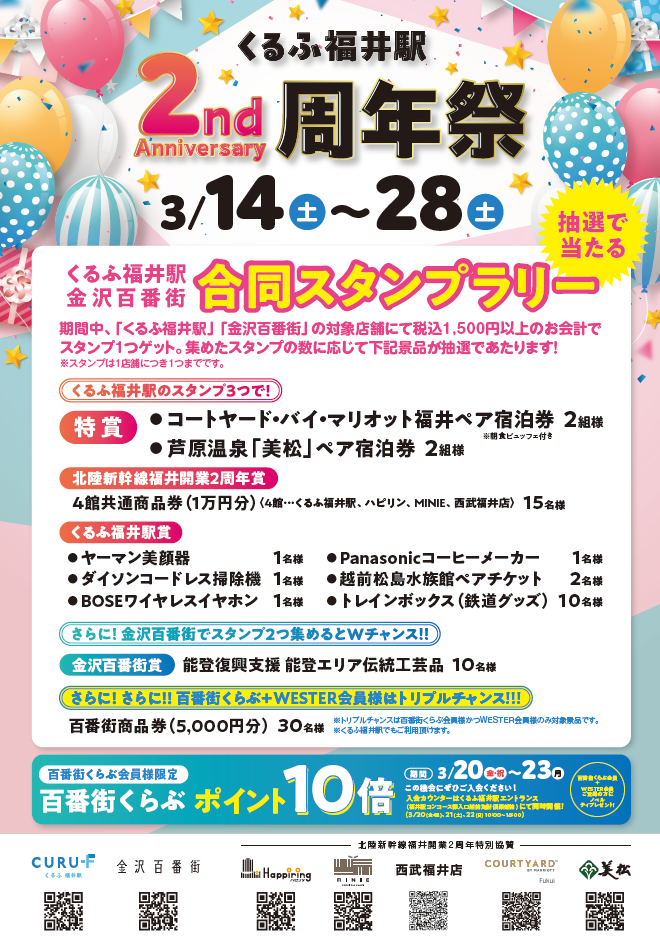 😊くるふ福井駅・金沢百番街 合同スタンプラリー 開催😊