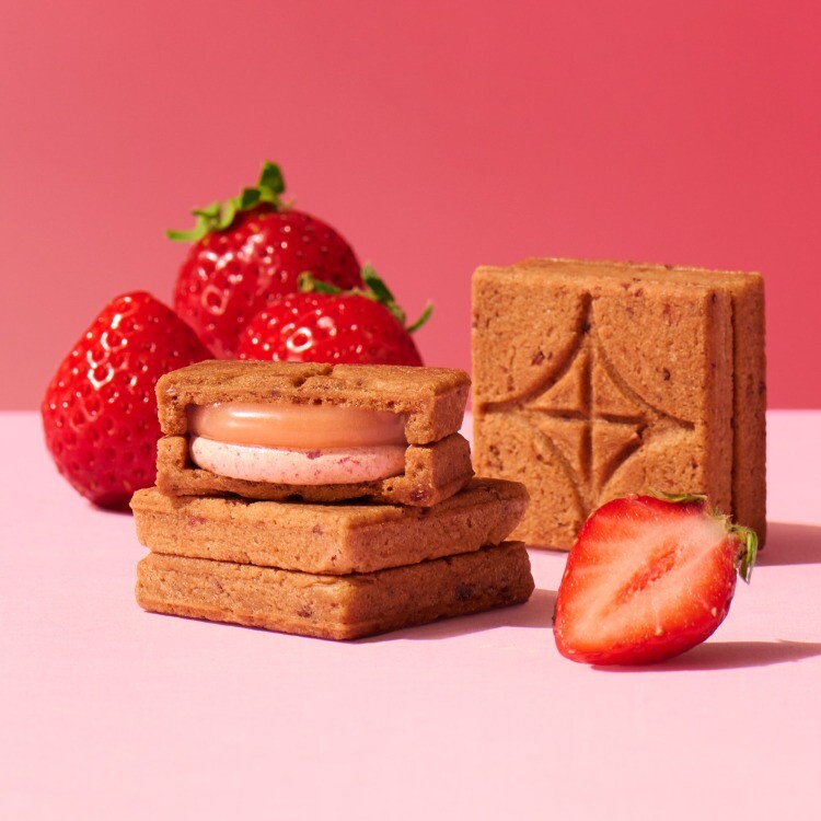 オリジナルのプレス機で「はさみ焼き」にしたサクサクのクッキーに、バター本来の風味を生かしたクリームとバターキャラメルを2層にサンドしました♪♪